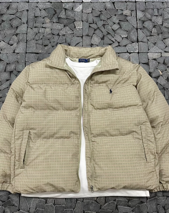 폴로 베이지 체크 패딩